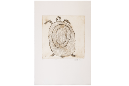Kate Miwulku had devoted her career solely to fibre weaving and bark painting until the late nineties. But from 1997 to 2002, the Charles Darwin University Art School and the Northern Editions Printmaking Studio set up a printmaking studio for the Maningrida Women's Centre. Master printmakers such as the Frenchman Jean Kohen came to pass on their skills. This studio enabled the women artists of Maningrida to discover new techniques such as etching and linocut. Kate proved to be an outstanding etcher and has continued to produce etchings ever since. In this work, we find a very talented use of line, inherited from the lattice patterns known as rarrk from ceremonial body paintings and paintings on bark.