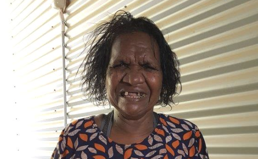 Katherine est une artiste du désert central qui a hérité des légendes transmises par ses parents. Dans cette toile elle a peint les motifs relatifs au site sacré de Tjintjin, à l’est de Kintore. Les cercles concentriques représentent les trous d’eau qui s’y trouvent et les petits ronds, les baies que les Aborigènes viennent encore de nos jours ramasser pour s’en nourrir. Les lignes qui font se rejoindre les cercles entre eux symbolisent quant à elles les dunes de sable vues du ciel. La légende dit qu’une Ancêtre vint séjourner dans la grotte de Tjintjin, avant de continuer son voyage vers d’autres sites sacrés.
