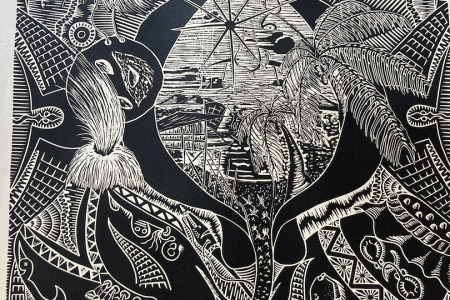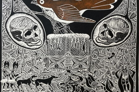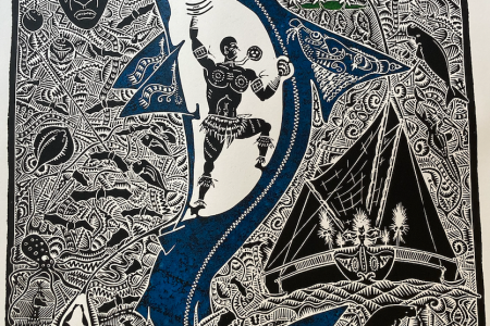 Robert Mast is a Torres Strait artist born in 1976. His work focuses on depicting the legends that run through the islands of this region using the linocut technique.