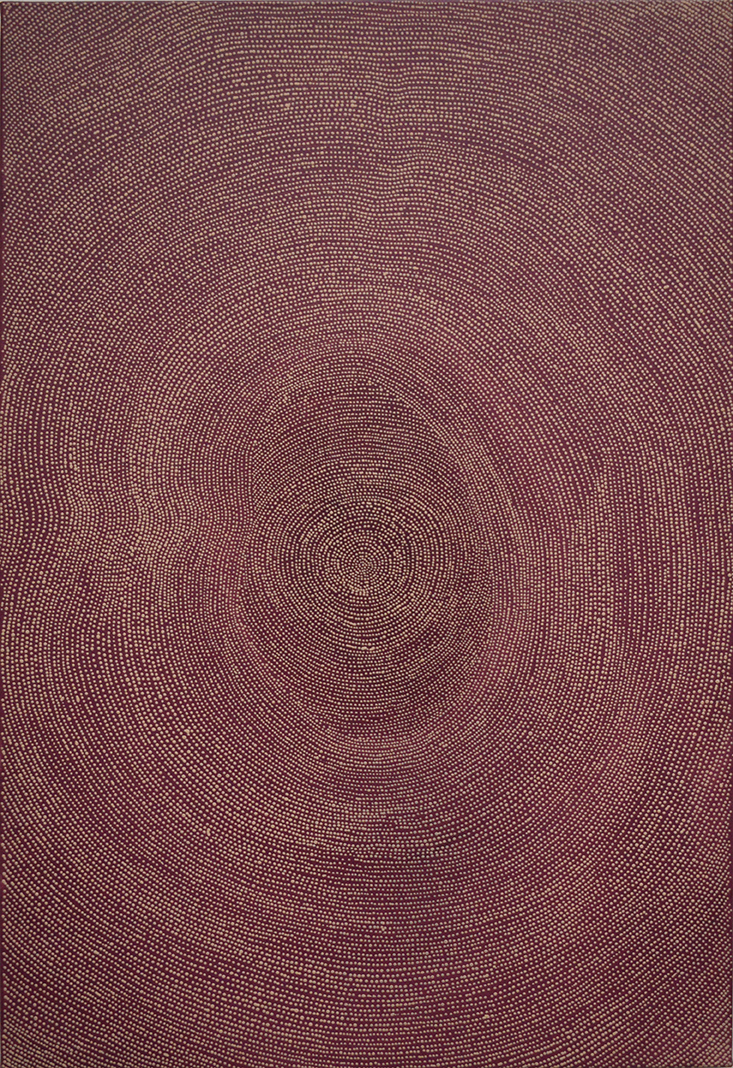 Bherwherra refers to Swan Lake, the artist's birthplace, represented by intertwined circles of dots emphasising her attachment to the land.
