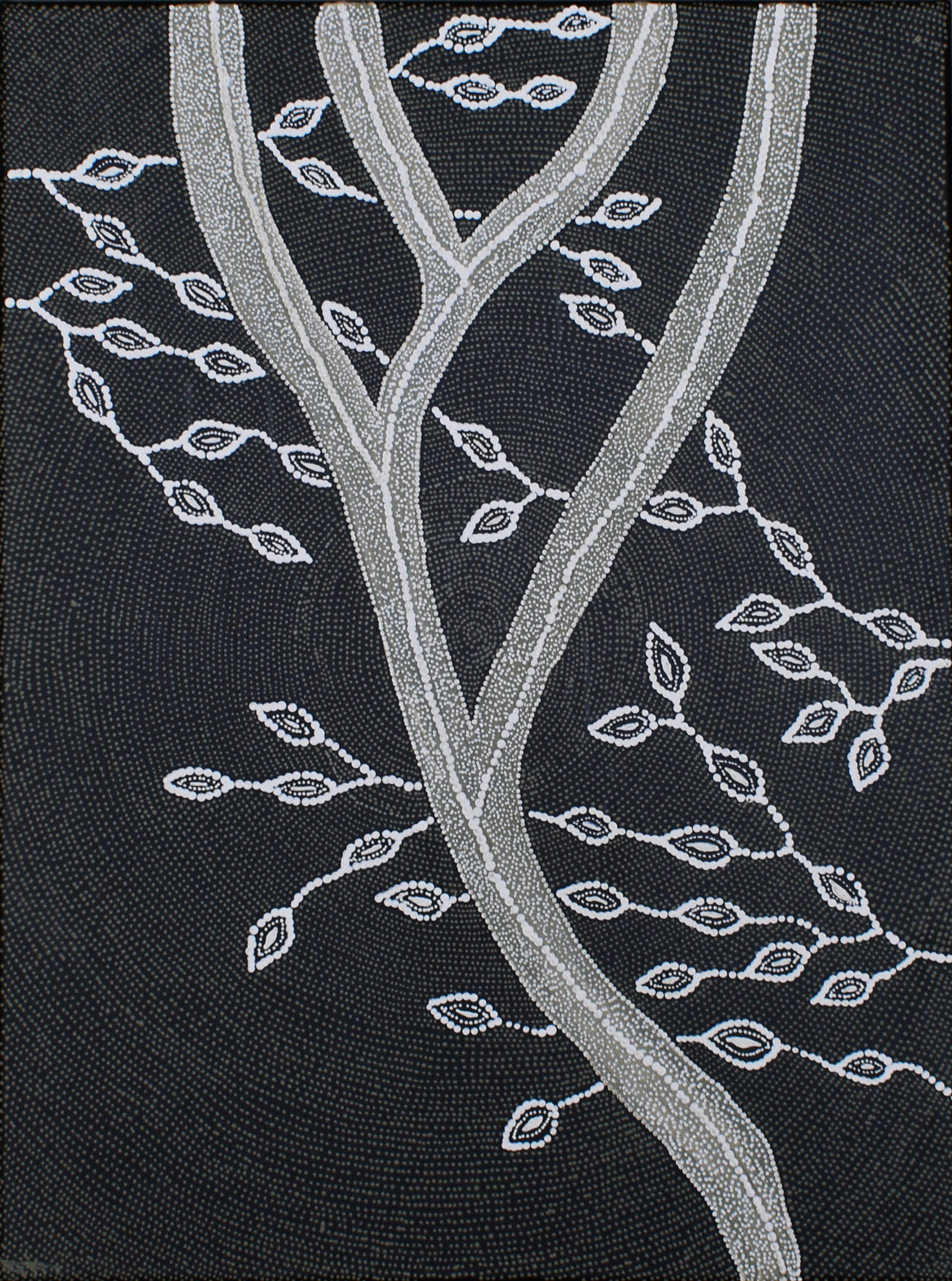 Gupu means water, illustrated by circles of dots connected by flowing lines; it also features leaves from the gadi, a culturally significant endemic shrub.