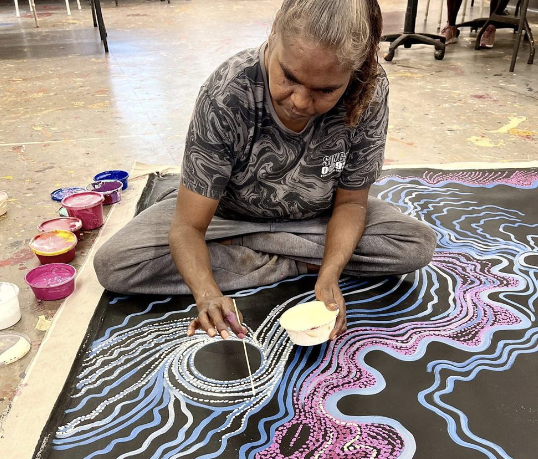 Aileen Adamson est née en 1976, dans la communauté de Nyapari, en plein coeur de la région des APY en Australie Méridionale. Elle est installée à Fregon avec son mari et ses quatre enfants. Sa grand-mère paternelle est l'artiste bien connu de Tjungu Palya, feu Kunanmara (Eileen) Stevens. Elle a rejoint le centre d'art de Kaltjiti où elle représente le pays Piltati, le territoire de sa grand-mère ainsi que le Wanampi Tjukurpa - l'histoire de deux serpents d'eau.