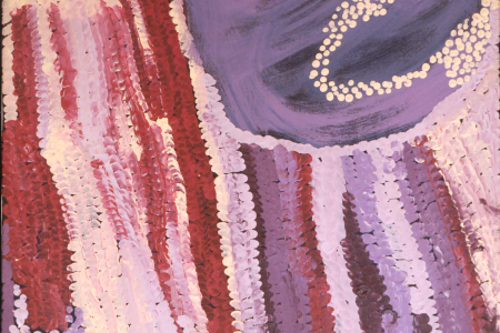 La jeune communauté de Martumili regroupe des artistes d’Australie Occidentale qui pour la plupart ne sont entrés en contact avec les Européens qu’à partir des années 1960. C’est la cas de Bugai Whyoulter qui vécut longtemps une vie nomade le long de la Canning Stock Route, une route mythique qui s’étend sur 2000 km à travers les déserts du Great Sandy, du Little Sandy et de Gibson.