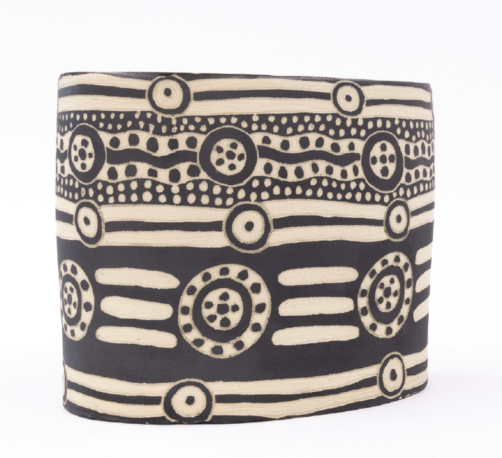 Melissa Lewis est une artiste de la communauté d’Ernabella qui transpose les rêves dont elle a hérité en céramique. Elle appartient à une famille d’artistes auprès de qui elle a appris les gestes ancestraux.