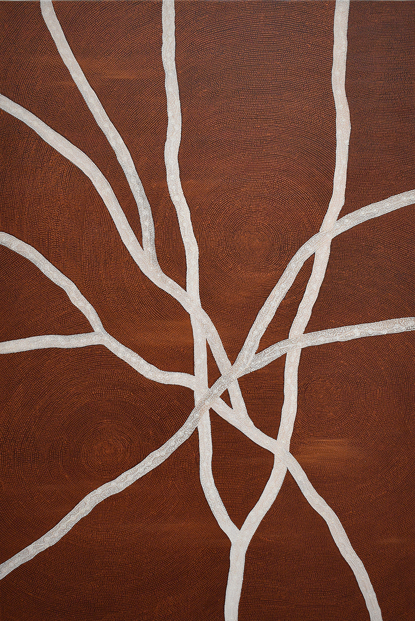 Le titre de cette série puise dans la richesse des langues autochtones, où Durum Gadju évoque le sud, la naissance, et le chiffre trois, inscrivant les figures maternelles dans une géographie symbolique et spirituelle. Chaque oeuvre agit comme une rivière, tantôt calme, tantôt en mouvement, dans laquelle chaque génération de femmes vient déposer sa voix. À mesure que l’eau avance, elle emporte avec elle les récits, les conseils, les gestes appris au fil du temps. Ce courant devient une mémoire fluide, une sagesse collective en perpétuelle expansion. À travers une esthétique marquée par des courbes délicates, des espaces ouverts et des motifs en résonance avec les cycles naturels, Niah compose une cartographie sensible du féminin. Ses oeuvres se déploient comme des conversations silencieuses entre mères, filles, soeurs, tantes : un dialogue visuel entre passé et futur.