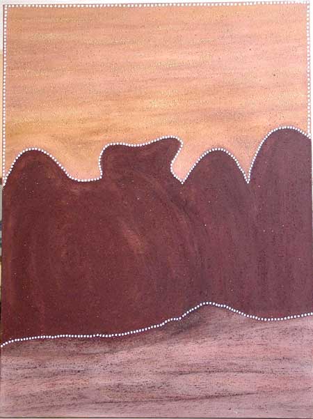 Conjuguant par ailleurs rigueur géométrique (les lignes pointillées entourant la toile) et sinuosité (le contour des formes), cette œuvre est tout entière sous le signe de l'union harmonieuse des contraires : elle peut en effet aussi bien se lire comme une peinture frontale des Bungle-Bungle que comme une vue "satellitaire" des environs de Warmun.