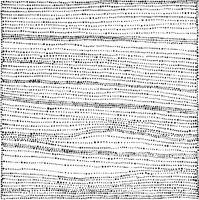 La peinture Sandhills (2005) de Dorothy Napangardi illustre parfaitement son approche minimaliste, avec un fond blanc parcouru de lignes noires dynamiques qui ondulent à travers la toile. Cette composition reflète les motifs éphémères du vent sur les dunes désertiques, capturant l’essence de sa terre ancestrale, Mina Mina, située près du lac Mackay, à la frontière du Territoire du Nord et de l’Australie-Occidentale.