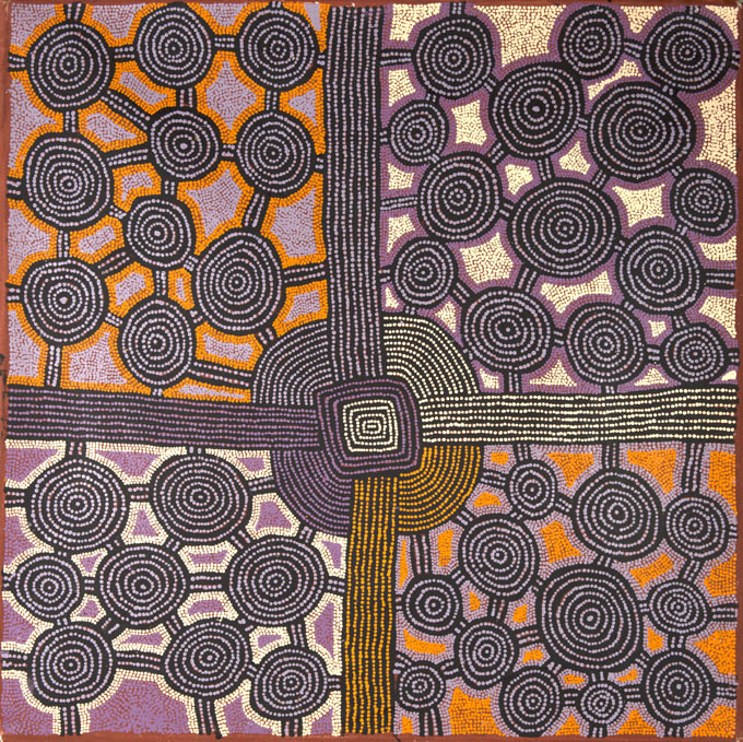A chacune de leurs étapes dans le désert, ils créaient un site sacré autour d'un point d'eau ou dans une zone marécageuse, comme ici Kulkuta qui est représenté au centre de cette toile.