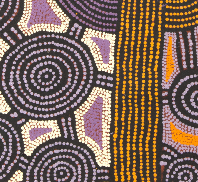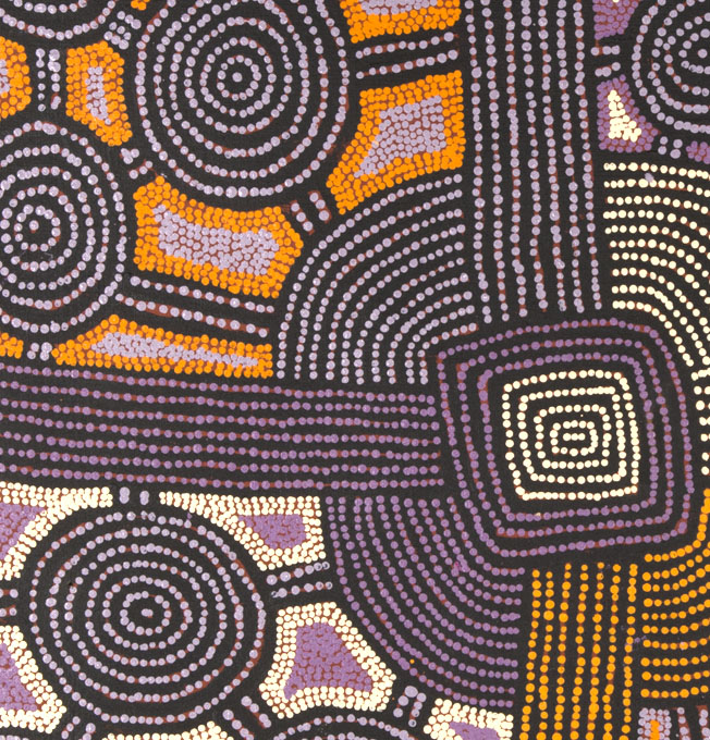 Originaire du désert central australien, Morris Gibson appartient à l'ethnie des Pintupi dont les artistes mettent en scène des sites liés aux histoires des Hommes Tingari.