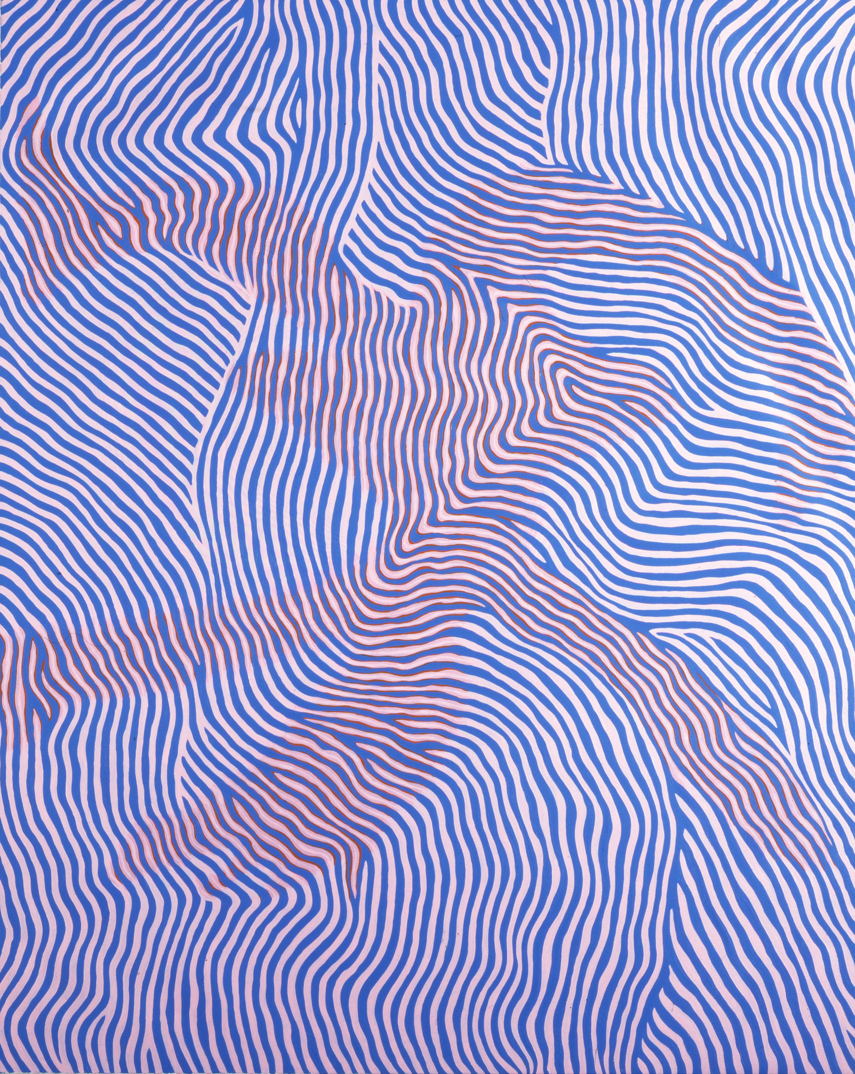 Artiste occidentale née en Italie, mais arrivée très jeune en Australie, Wilma Tabacco s’attache dans ses oeuvres à exprimer de manière abstraite les vibrations de l’eau, de la terre et de l’air australiens qui semblent, comme ici, se mêler.