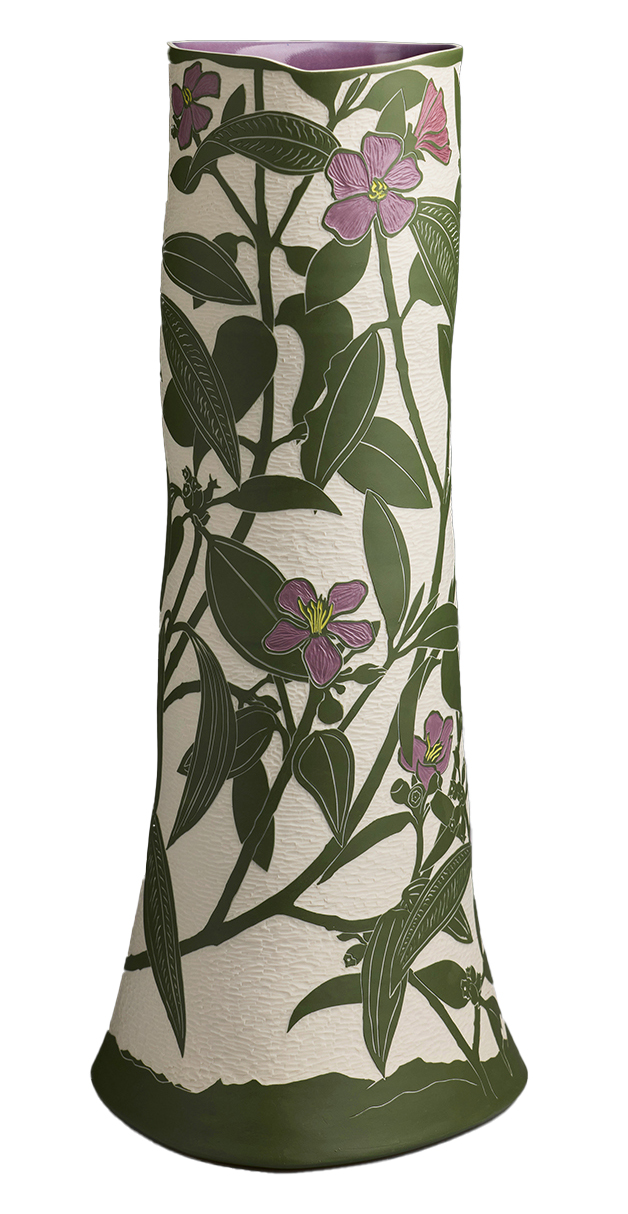 Dr Cathy Franzi est une artiste céramiste australienne reconnue pour son travail qui explore les liens entre art, science et environnement à travers la représentation de la flore australienne. Son approche interdisciplinaire, nourrie par une double formation en sciences et en arts visuels, l’amène à collaborer avec des centres de recherche botanique et à puiser dans des archives, relevés de terrain et collections anciennes pour nourrir sa pratique.
