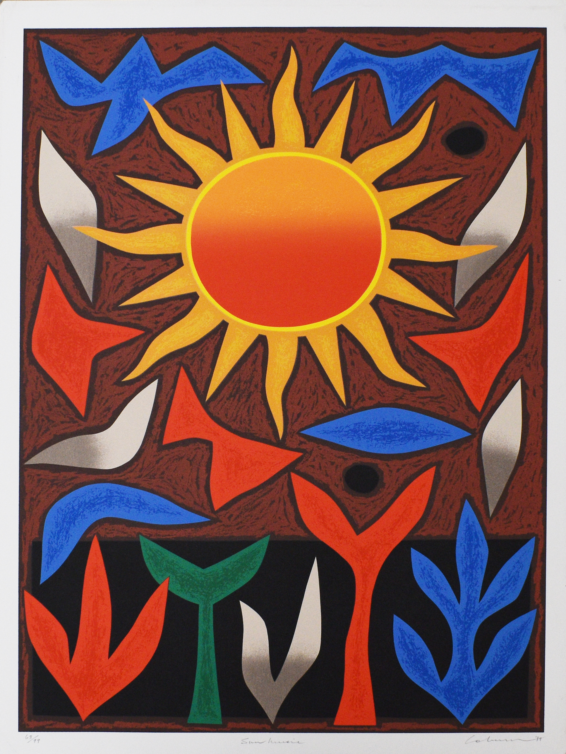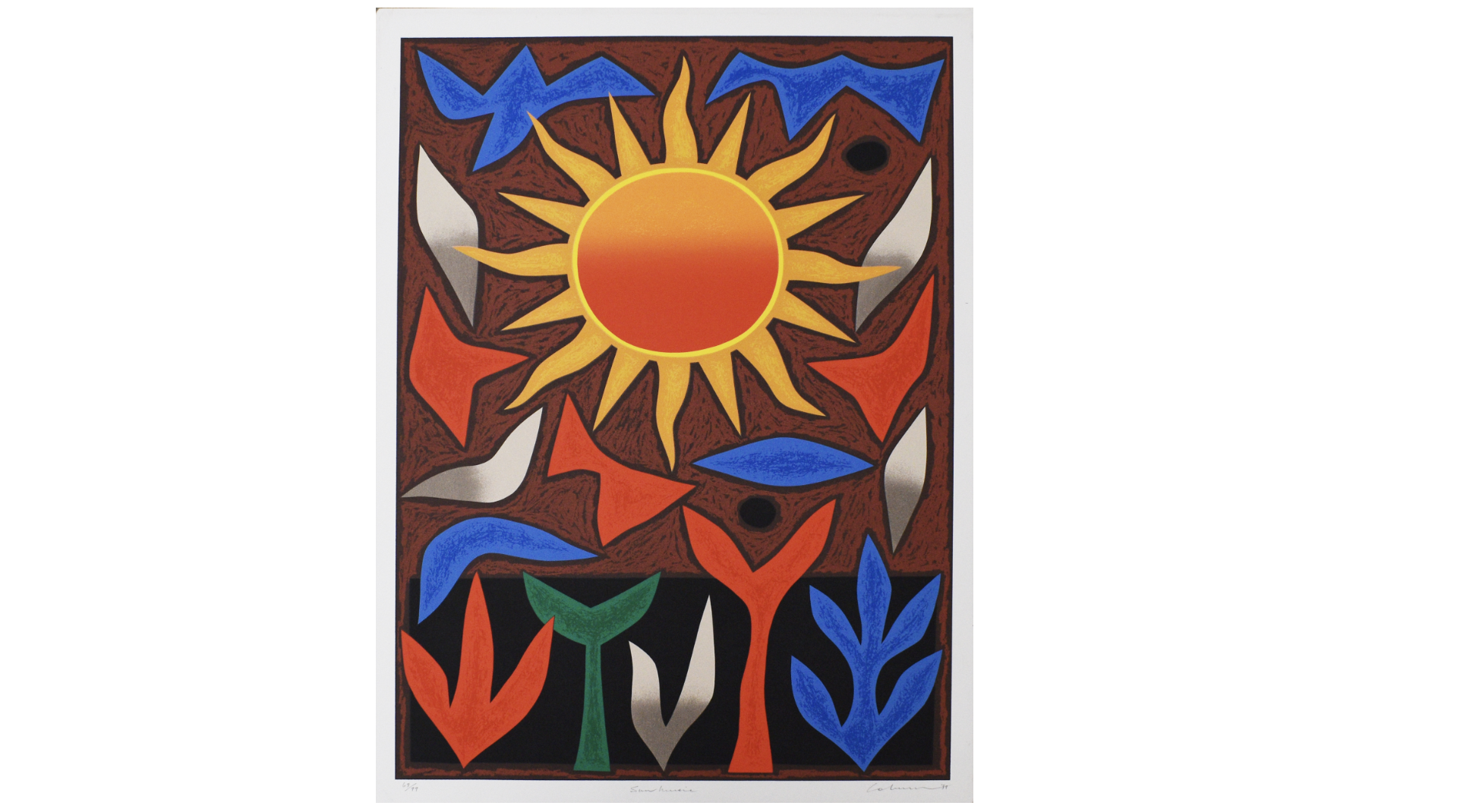 John Coburn est connu pour ses peintures abstraites et ses œuvres textiles qui regorgent de formes dynamiques et de couleurs rauques. Faisant référence aux formes biomorphiques, elles reflètent son admiration pour l'art moderniste de sommités comme Pablo Picasso, Joan Miró et Henri Matisse. D'abord formé comme graphiste, Coburn s'est fait connaître en travaillant comme tapissier pour un atelier à Aubusson, près de Paris, à la fin des années 1960. Ses créations de tissus ont orné les intérieurs de monuments remarquables, de l'Opéra de Sydney au John F. Kennedy Center for the Performing Arts. Coburn a développé son style de peinture abstraite dans les années 1970, s'inspirant de la spiritualité aborigène ainsi que de l'histoire de l'art européen.