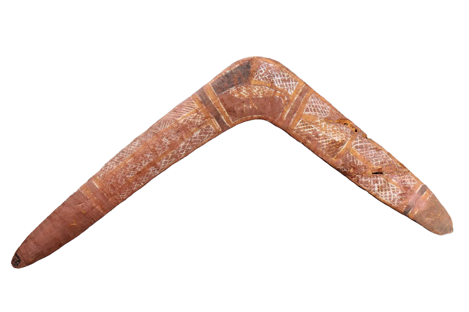 Ceremonial Boomerang, Arnhem Land, Northern Territory. Carved and engraved hardwood and natural pigments.
